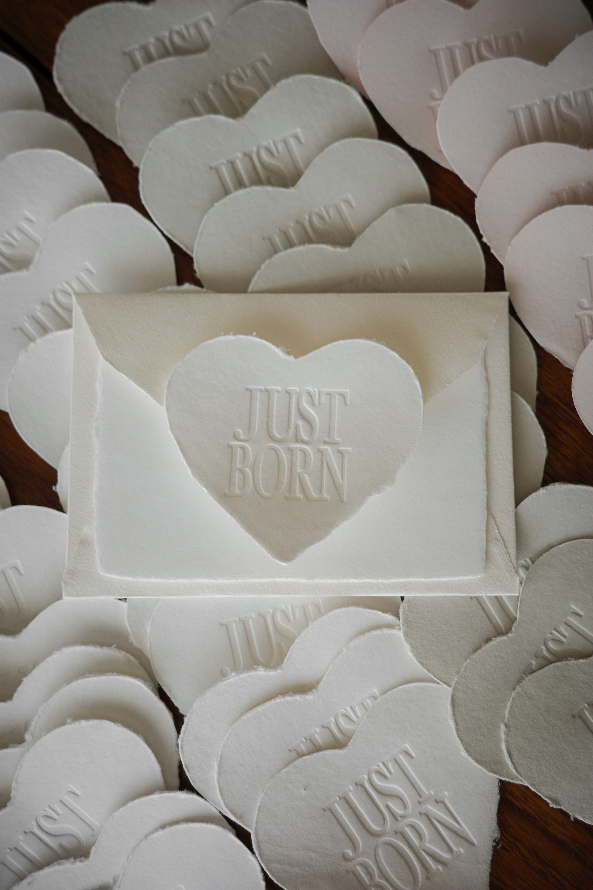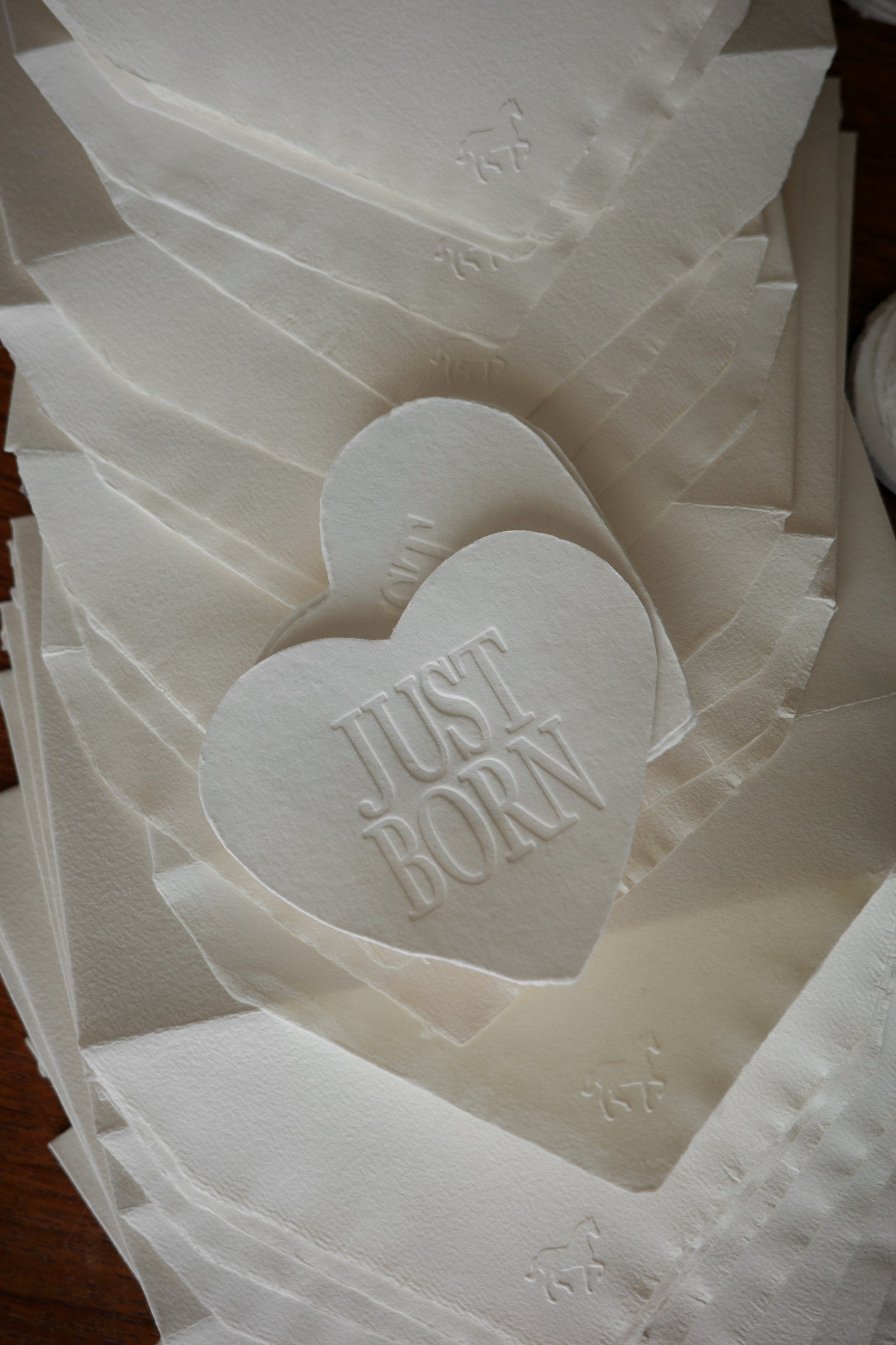 3回目の販売は、Just Born Heart Cardと、保存用の封筒に加え、Babyの手形などを押したり自由にお使い頂けるカードの3点Setとなります。今回は封筒の種類を一新し、お馬さんのエンボスマークをフラップに印字し、よりBabyらしいデザインを楽しんで頂けるものをご用意いたしました。